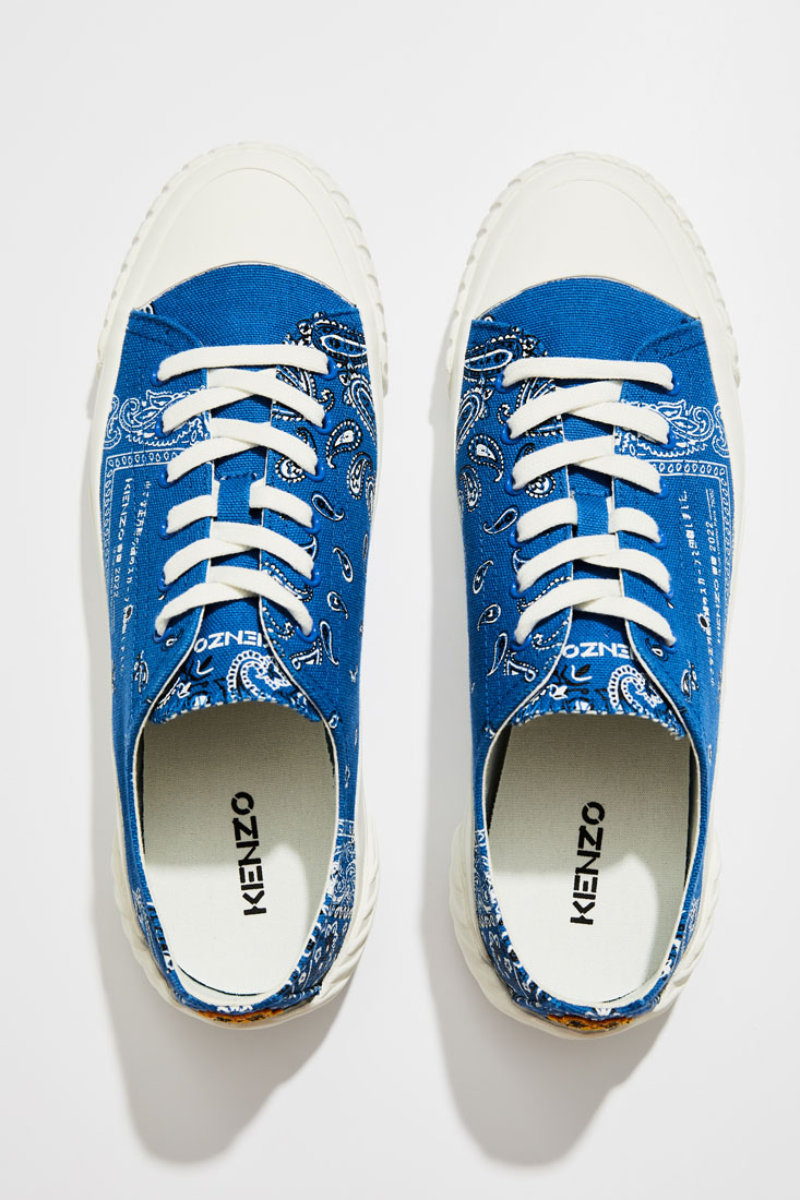 В прошлом году место креативного директора Kenzo занял знаменитый японский дизайнер Ниго, создатель BAPE и других известных стритвир-марок. И первые плоды его работы: новая капсула Bandana print, вдохновленная узорами ковбойских бандан. Кеды сделаны из хлопкового канваса и понравятся тем, кто ищет ту самую пару на лето, которая подойдет и к чиносам, и к шортам.