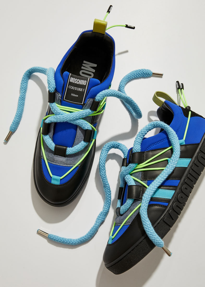Как выглядят сникеры будущего? Возможно, именно на такой вопрос отвечали дизайнеры Moschino, создавая эту пару. Несмотря на футуристичный вид, выполнены по лучшим канонам премиум-жанра: сделаны в Италии из натуральной кожи, замши и установлены на нескользящую резиновую подошву.